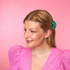 Indispensable des pique-niques et des raclettes, le cornichon s’invite désormais dans vos coiffures ! Cette mini pince vert émeraude, ornée de pois dorés, apporte une touche ludique et originale à vos cheveux, avec un charme plus vrai que nature.