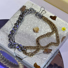 Le collier Cristie *2 est composé de chaînes maille gourmette de différents diamètres en acier inoxydable doré et argenté.